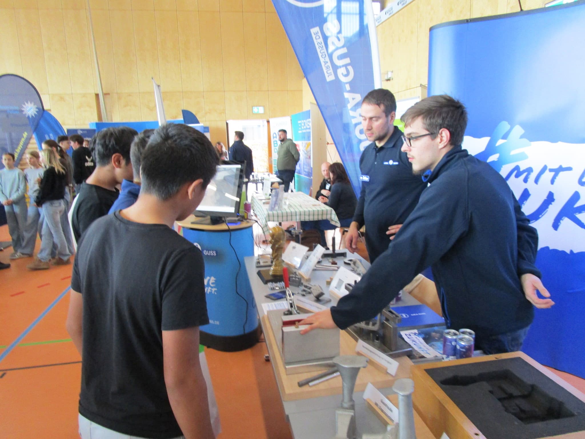 Auch wir von Jura-Guss nutzten die Gelegenheit, um mit vielen interessierten Schülerinnen und Schülern ins Gespräch zu kommen. An unserem Stand konnten die Besucherinnen und Besucher mehr über unsere Ausbildungsberufe und die spannenden Einstiegsmöglichkeiten bei Jura-Guss erfahren.